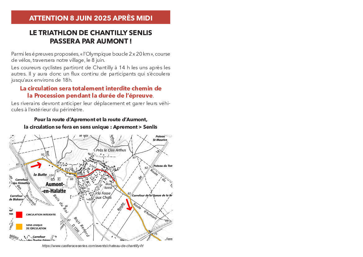 Triathlon le 8 juin 2025 - chemin de la Procession fermé