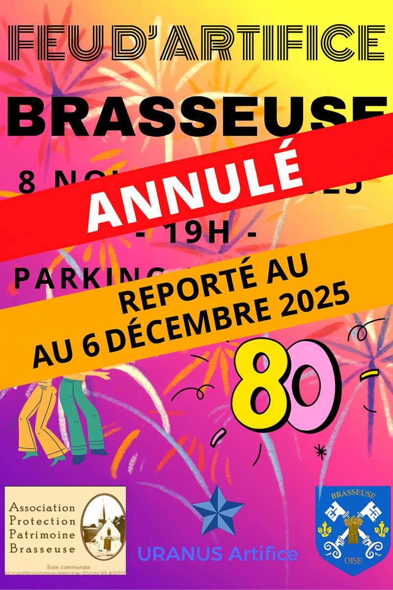 FEU D'ARTIFICE Annulé et Reporté au 6 Décembre 2025 19h