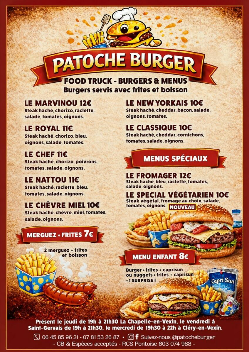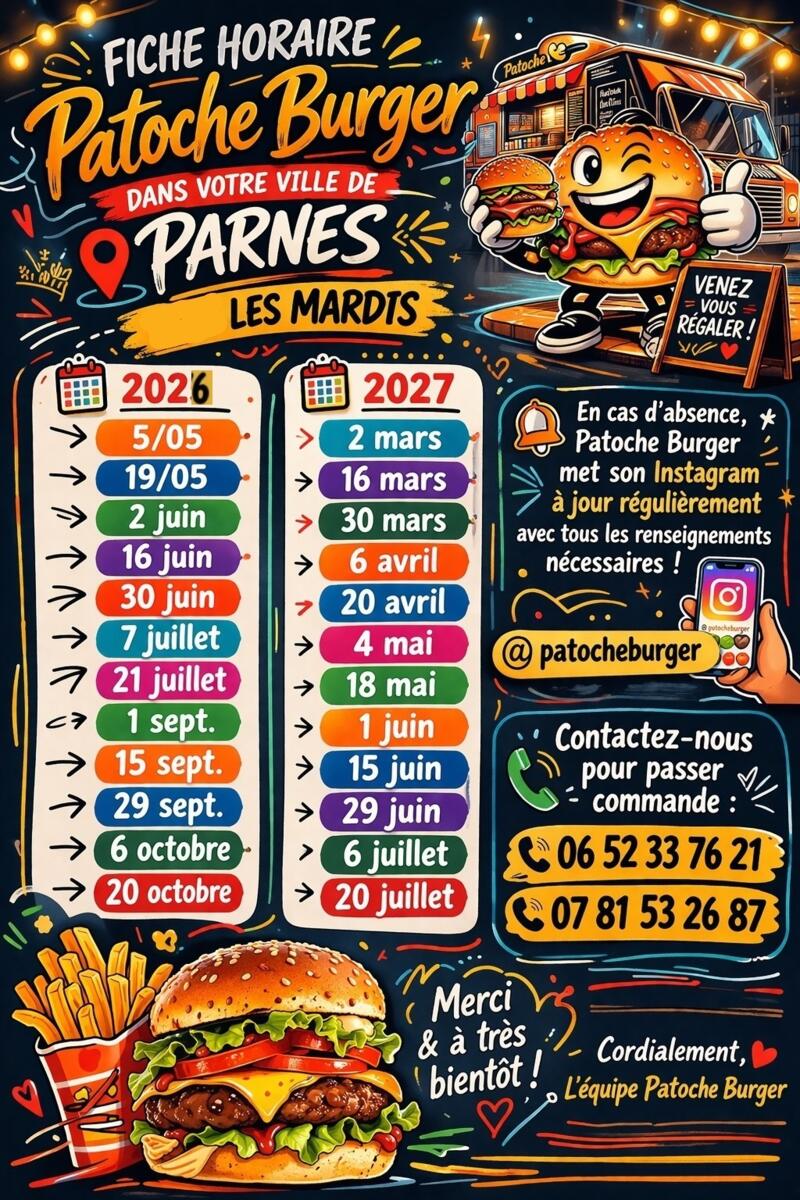 Patoche Burger à PARNES 4/22/26 A Partir du Mardi 05 Mai 2026 Patoche Burger sera sur la commune les mardis tous les 15 jours