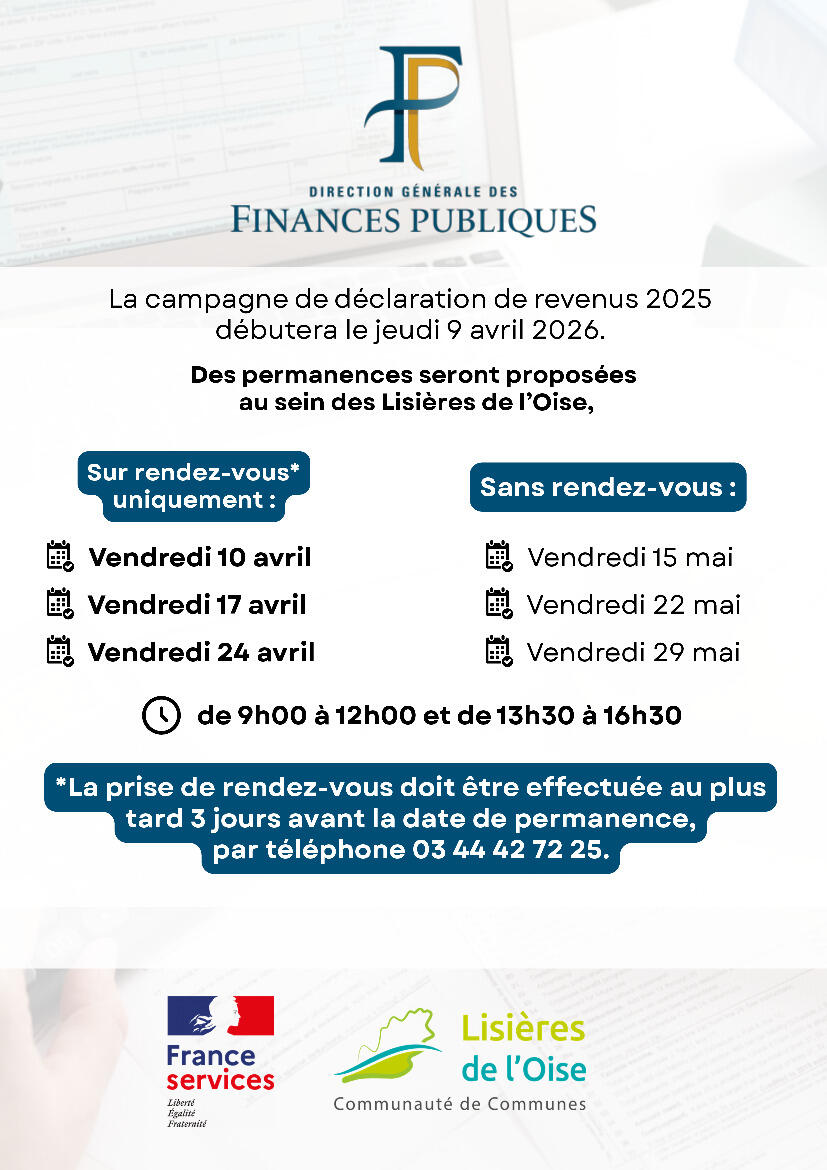Comme chaque année, des permanences seront proposées au sein des Lisières de l’Oise, tenues par un agent du Service des Impôts des Particuliers (SIP) de Compiègne.