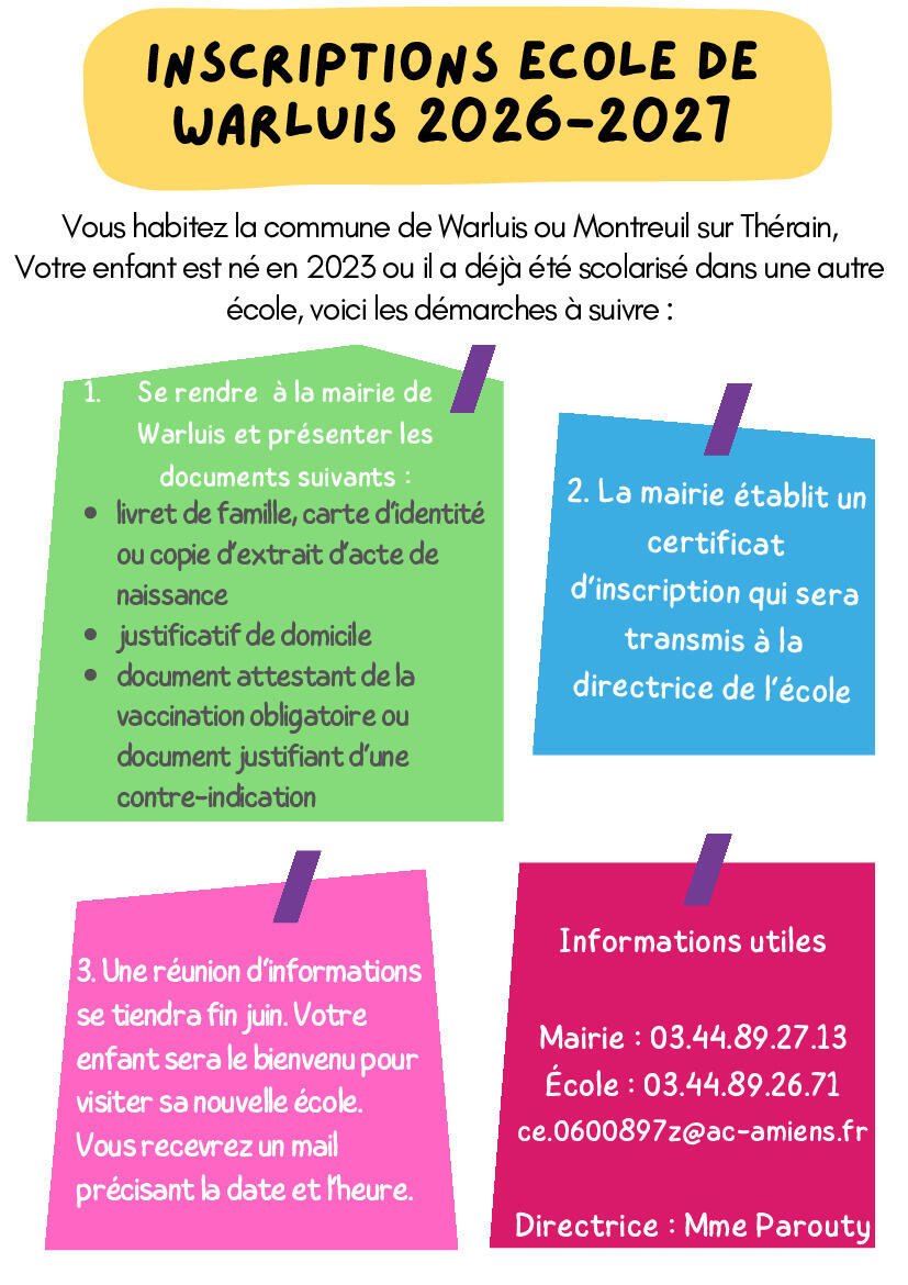 INSCRIPTION A L'ECOLE POUR LA RENTREE 2026 - 2027