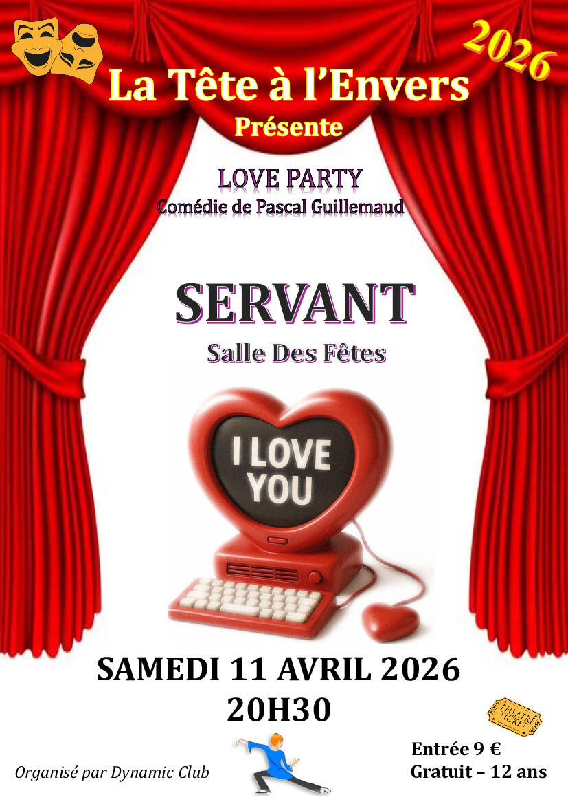 L'association Dynamic Club propose la pièce de théâtre Love party par la Compagnie "La tête à l'envers" samedi 11 avril à 20h30 à la salle des fêtes
