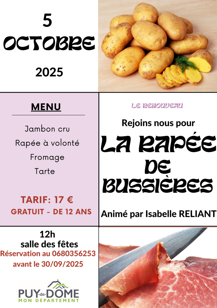La rapée de Bussières le dimanche 5 octobre 2025 9/9/25 Dimanche 5 octobre 2025 à 12h réservation au 0680356253