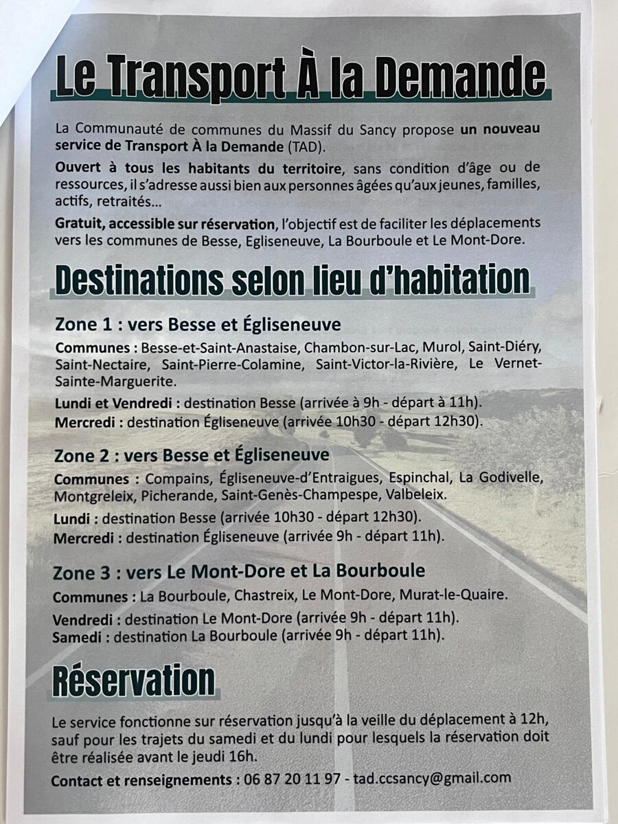 SERVICE DE TRANSPORT 4/17/26 Service gratuit de la Communauté de Commune du Massif du Sancy de transport à la demande.
