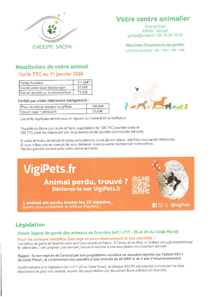 La fourrière animale nous informe