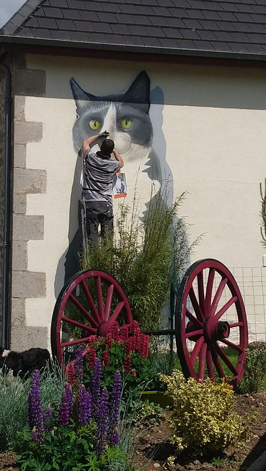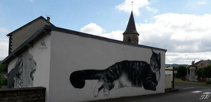 Depuis l'été 2017 et l'achat par la municipalité d'un "Chat de Gouttières"en douglas réalisé par un sculpteur à la fête du bois de Sainte-Christine, de nombreux visiteurs sont venus découvrir le félin et l'ont pris en photo. Devant cette engouement et sous la houlette de l'association LOUMA, les graffeurs Cofee, Rino etTopaz ont réalisé des fresques de chats sur des façades de la commune et le street art s'est invité à la campagne là où on ne l'attendait pas....Chat Alors !