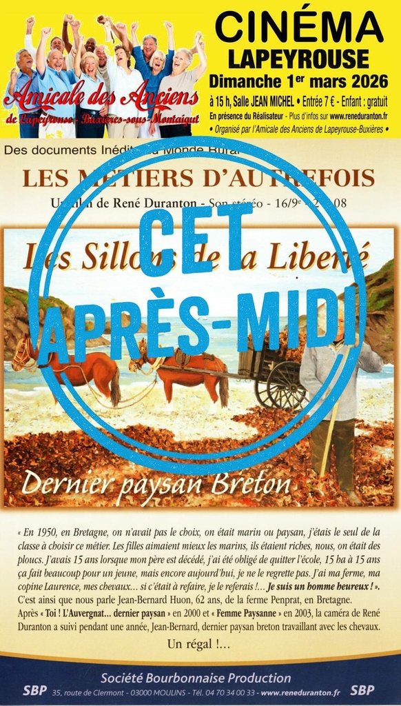 Cinéma : « Les sillons de la liberté » cet après-midi ! 3/1/26 Cliquer sur l'image ci-dessus pour accéder aux détails. Source : Mairie de Lapeyrouse