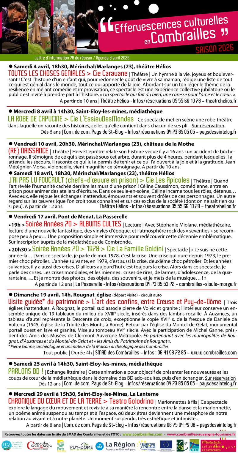 / Effervescences culturelles en COMBRAILLES. Avril 2026