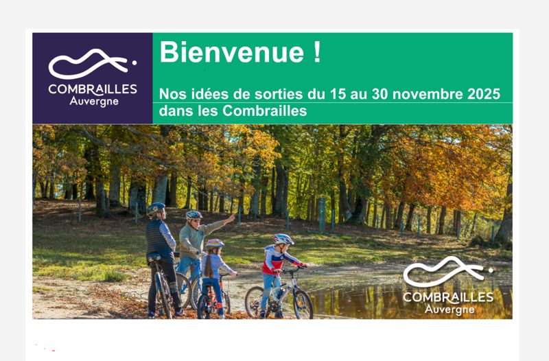 Idées sorties en Combrailles du 15 au 30 novembre 2025. 11/15/25 Cliquer sur l’image pour accéder au programme.