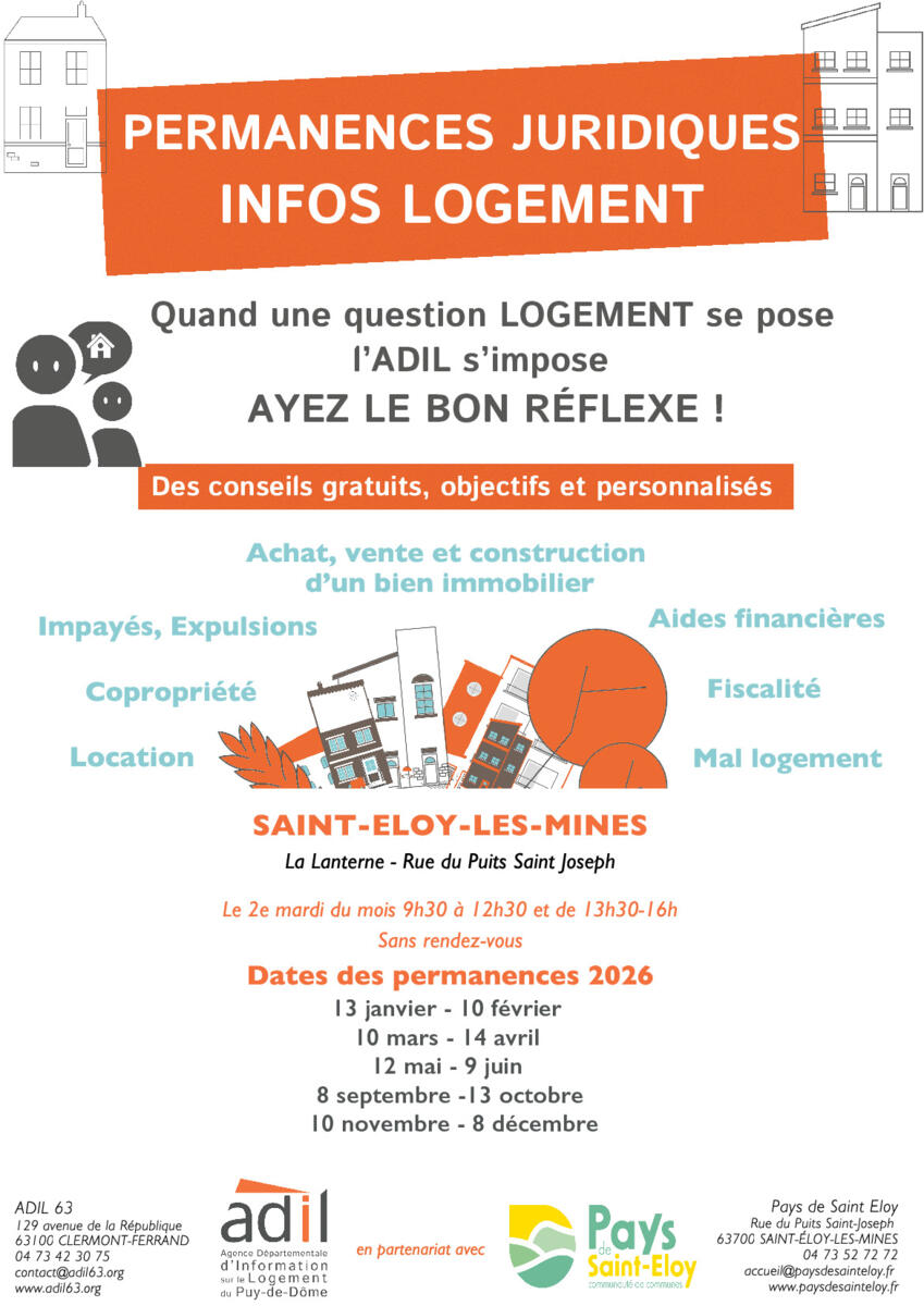 Permanences juridiques logement de l'ADIL63 2/28/26 Voir affiche en PJ Source : Mairie de Saint-Maurice-prés-Pionsat