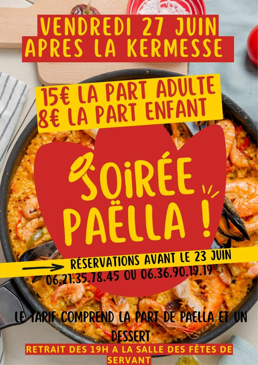 Soirée paella 6/16/25 L'association Les P'tits Loups de Servant organise une soirée paëlla vendredi 27 juin. Réservation possible avant le 23 juin.
