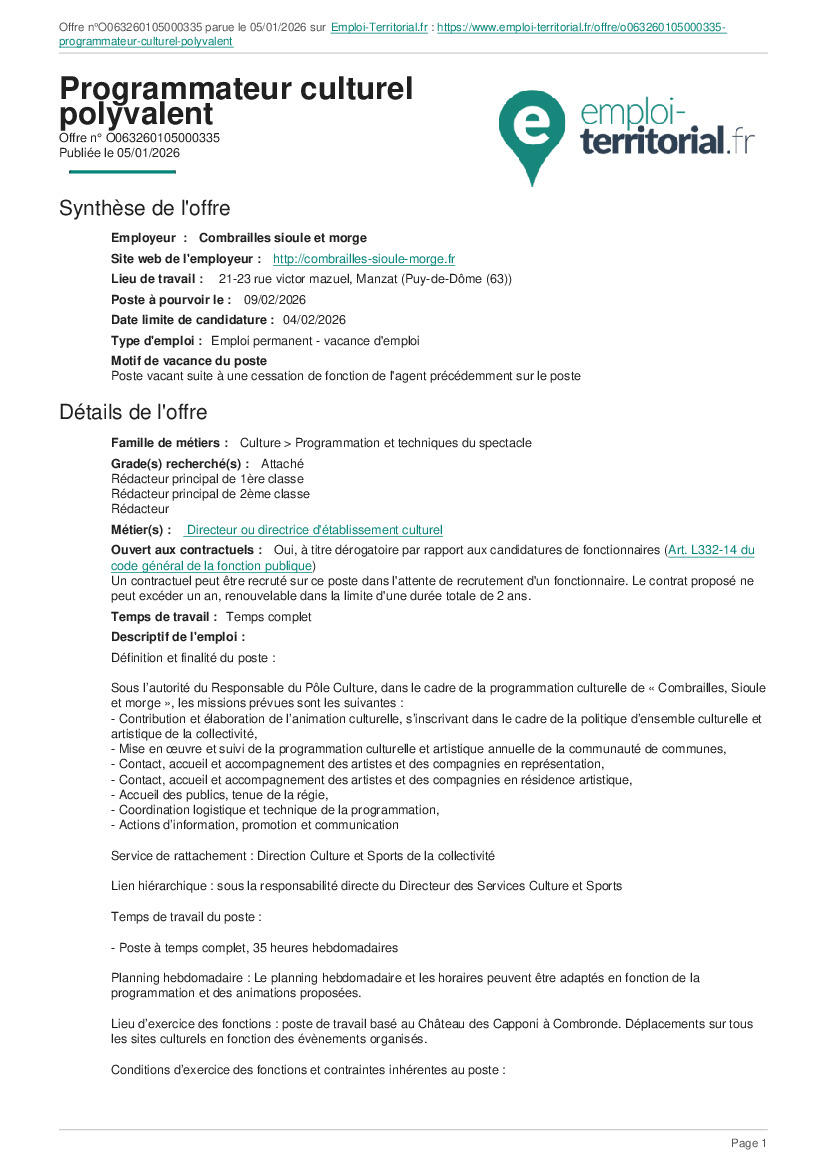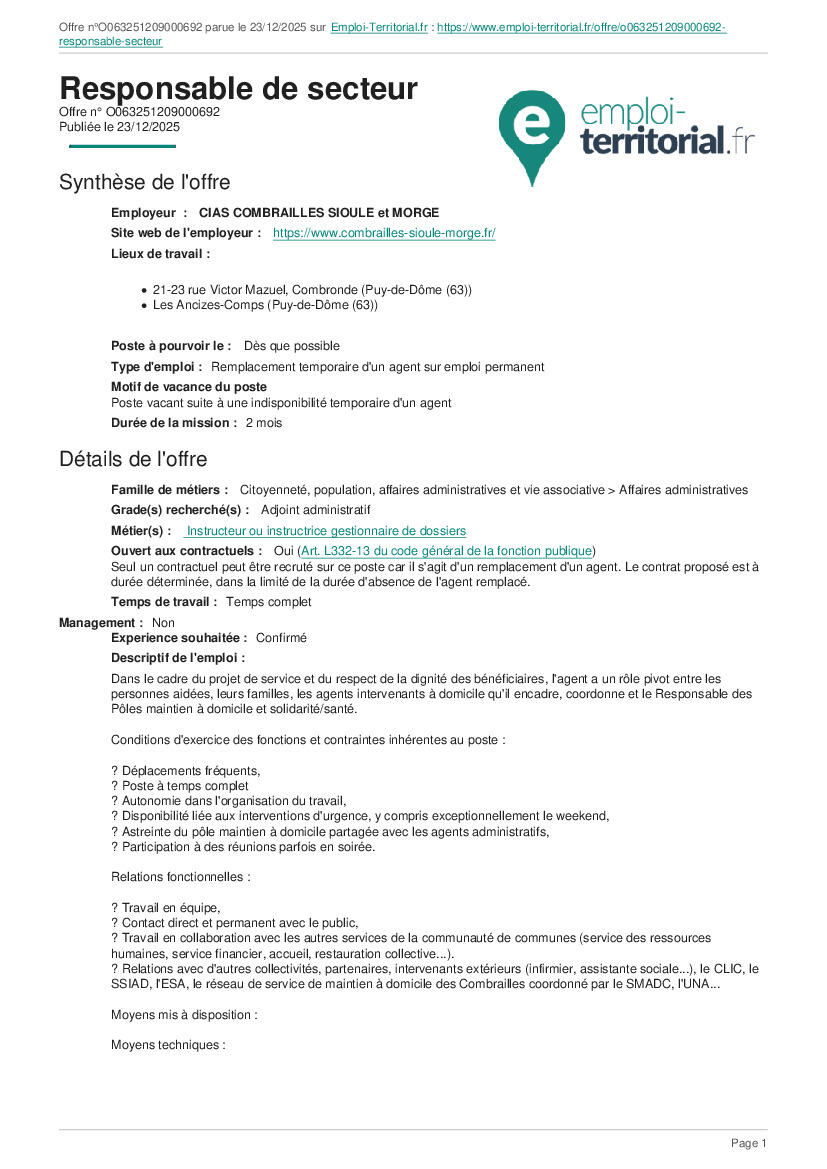 Your town hall / Services / Offres d'emploi dans les Combrailles