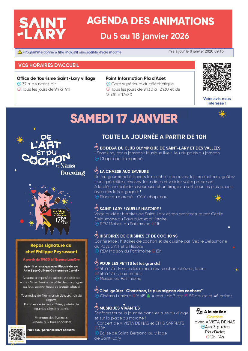 Animations du 28 décembre 2025 au 4 janvier 2026