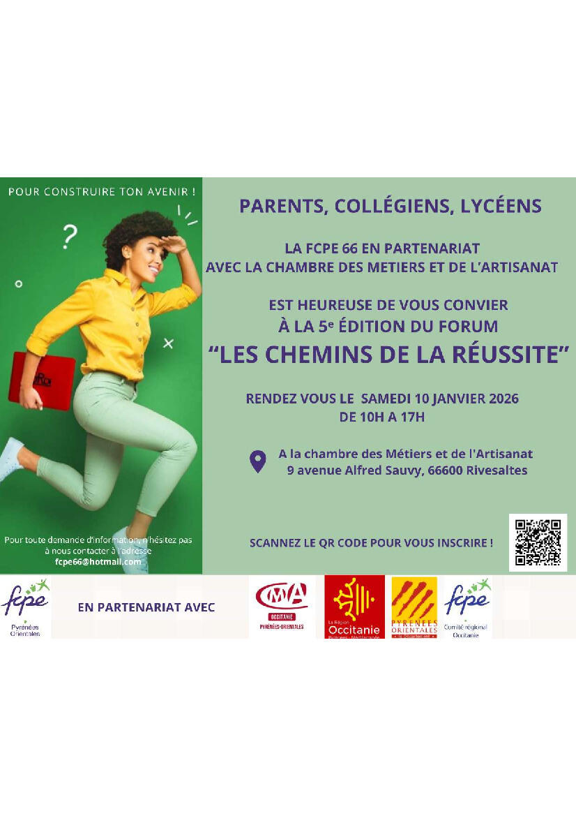 🤝 Organisé par la FCPE 66, en partenariat avec la Chambre des Métiers et de l’Artisanat.