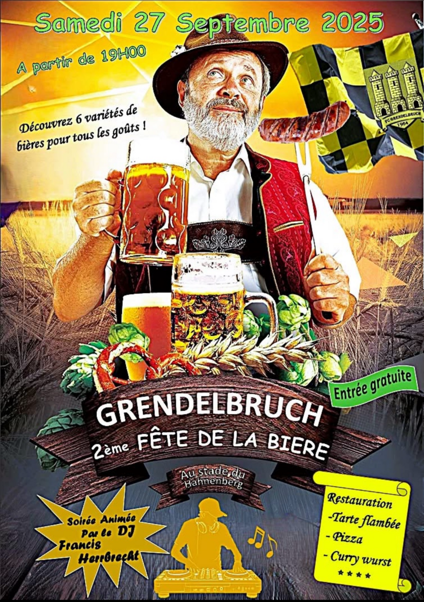 Le Football Club de Grendelbruch organise sa deuxième fête de la bière le samedi 27 septembre 2025.