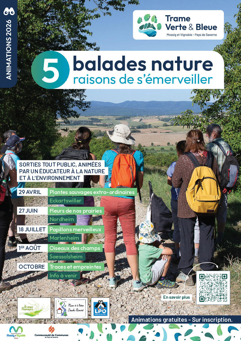 Les Communautés de communes du Pays de Saverne et de la Mossig et du Vignoble proposent à nouveau cette année un programme de balades nature, ouvertes à tous.