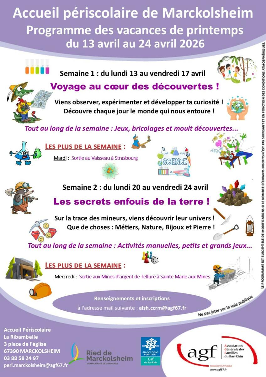 💐 Programme périscolaire de Marckolsheim pour les vacances de printemps 💐