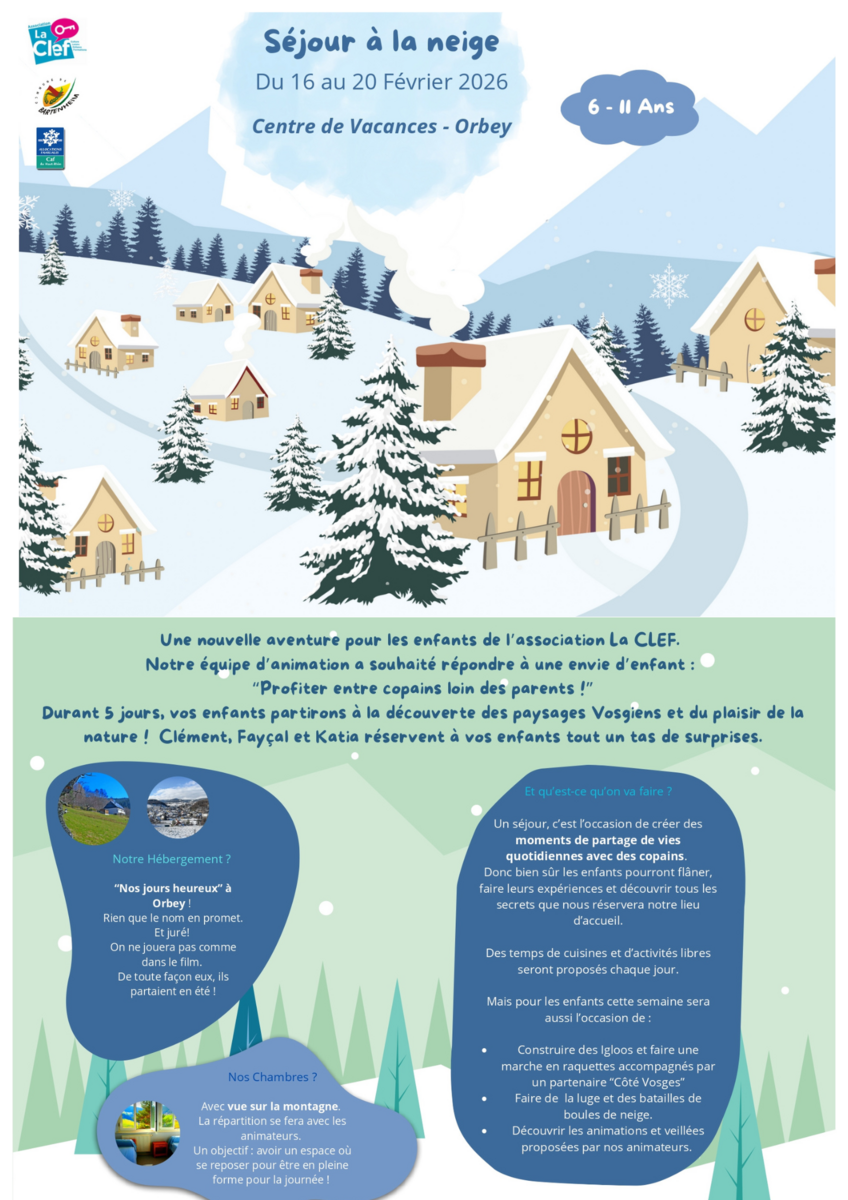 séjour à la neige au centre de vacances à Orbey pour les 6 - 11 ans