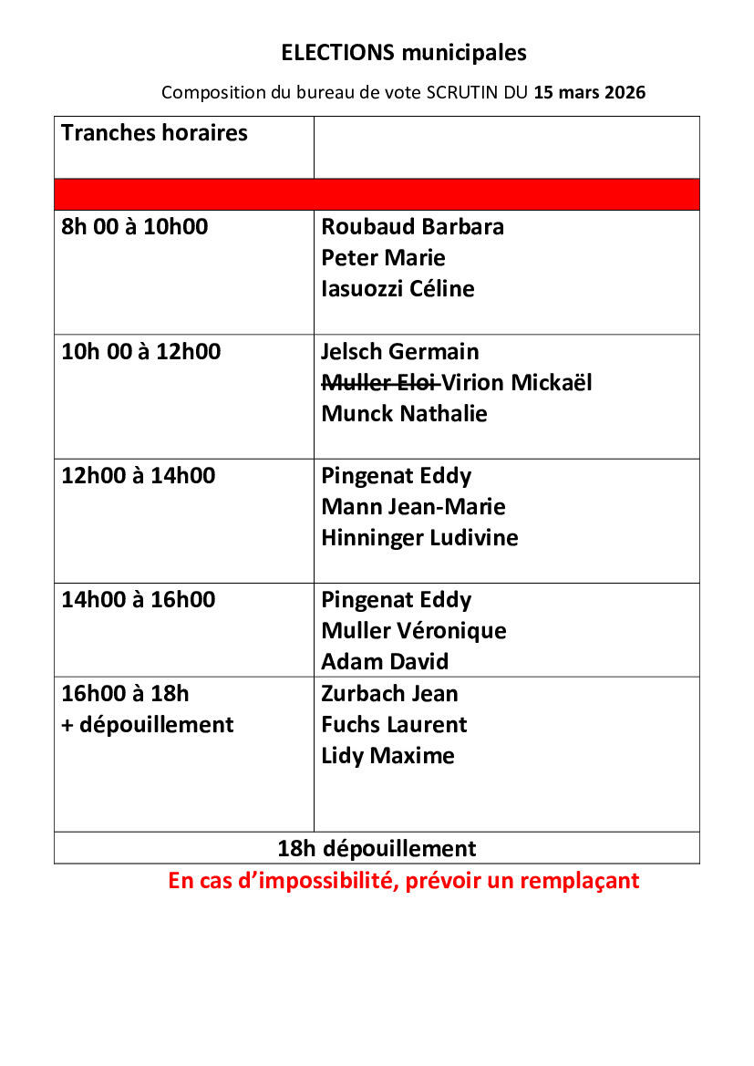 Le tableau du bureau de vote a été modifié comme indiqué dans le document joint.