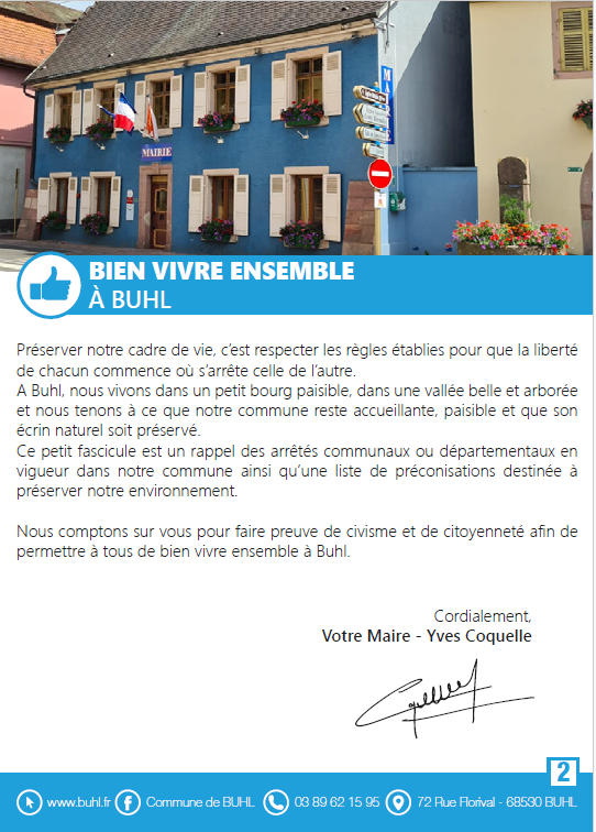 Parce que la qualité de vie dans notre commune est l'affaire de tous, la Ville de Buhl a le plaisir de vous partager "Le guide du bien vivre ensemble - Respect et civisme".