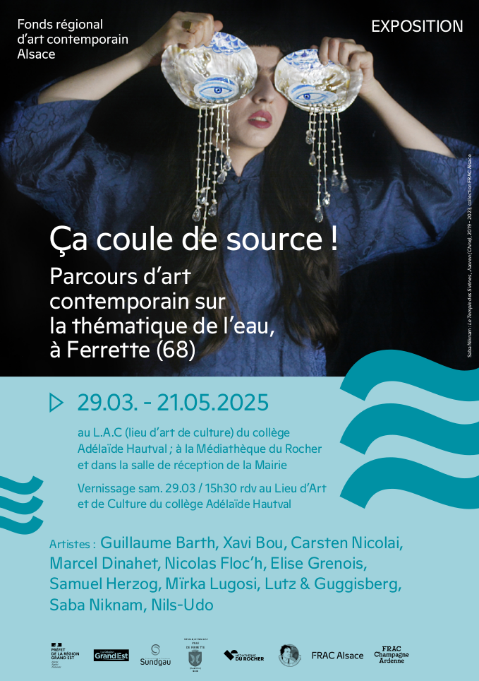 Ne manquez pas l'exposition d'art contemporain "Ça coule de source !", un parcours artistique unique autour du thème de l'eau, en partenariat avec le FRAC Alsace, la médiathèque du Rocher et la mairie de Ferrette.