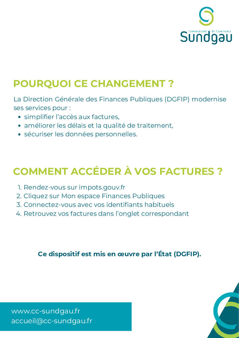 Le flyer explicatif ci-dessous est disponible sur le site de la CCS : https://cc-sundgau.fr/dematerialisation-des-factures/