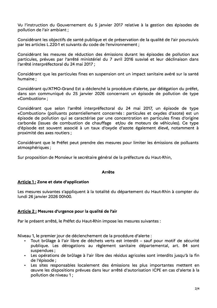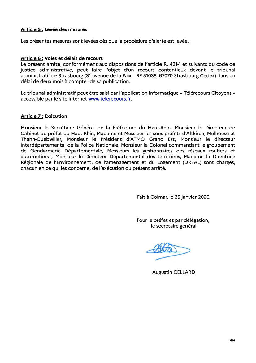 Dans ce cadre, le préfet du Haut-Rhin a décidé la mise en œuvre de mesures d'urgence à compter de ce lundi 26 janvier 2026 à 00h00.