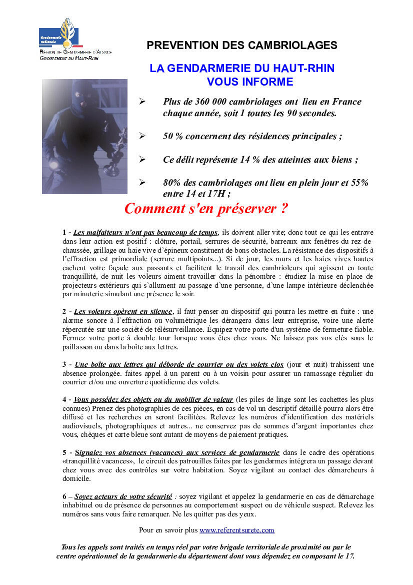La gendarmerie nous informe que notre département est fortement impacté par des cambriolages. Les faits se produisent la journée et la nuit.