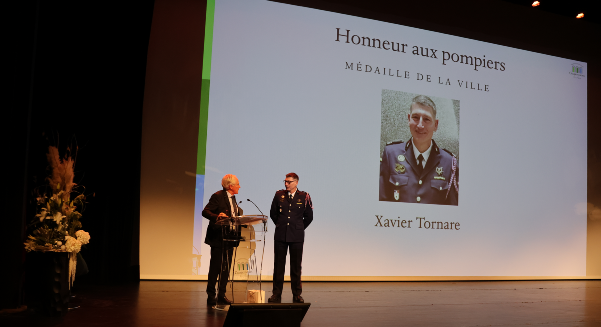 🏅 Xavier Tornare, ancien chef de la caserne des pompiers, à qui a été remise la médaille de la ville en reconnaissance de son engagement.