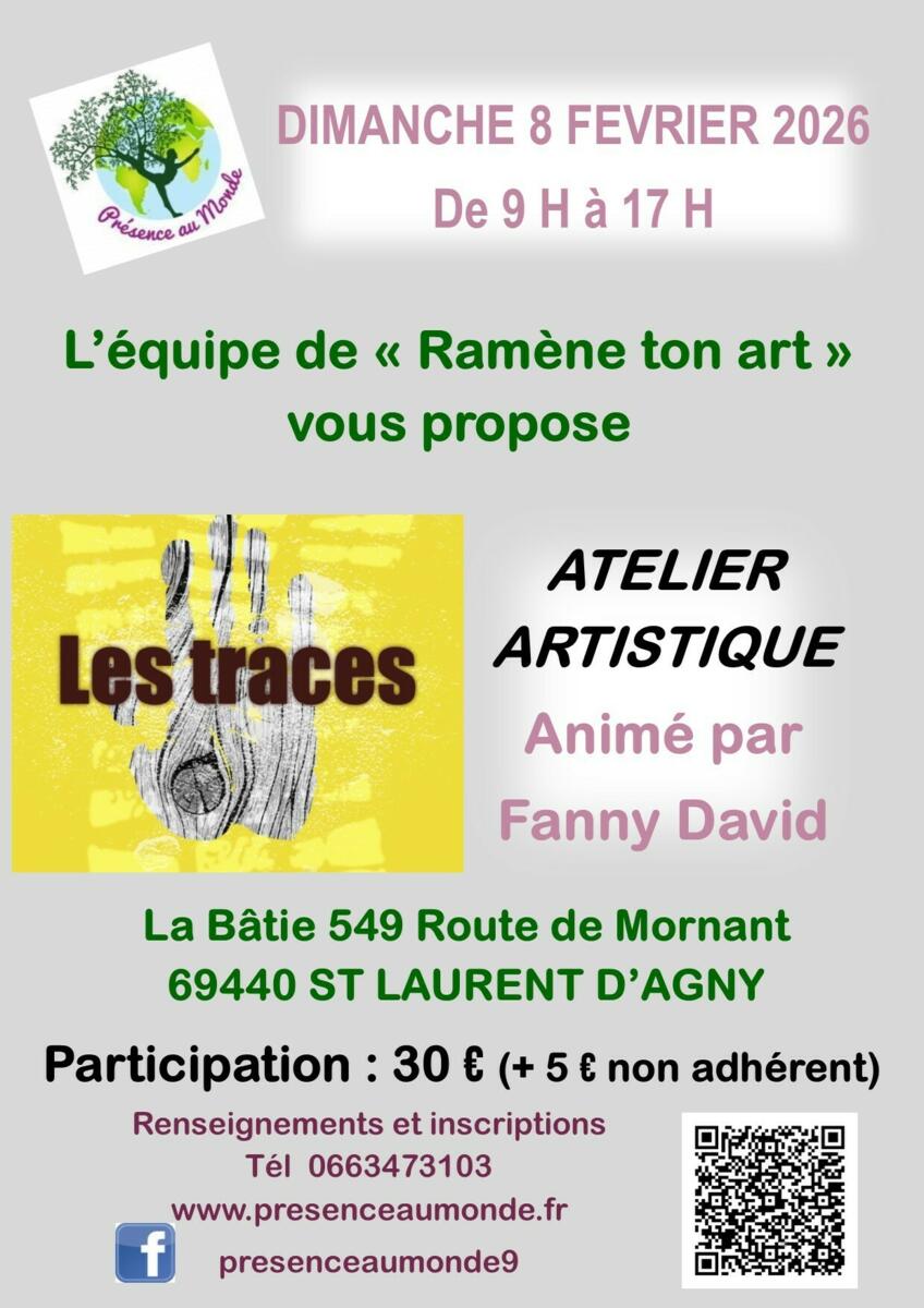Pour vous inscrire : https://www.helloasso.com/associations/presence-au-monde-chaussan/evenements/atelier-artistique-ramene-ton-art-les-traces