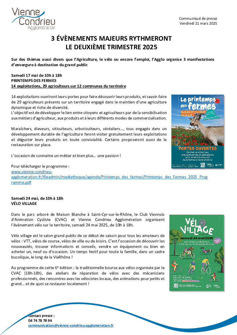 Sur des thèmes tels que l’agriculture, le vélo ou l’emploi, l’Agglo organise 3 manifestations d’envergure à destination du grand public!