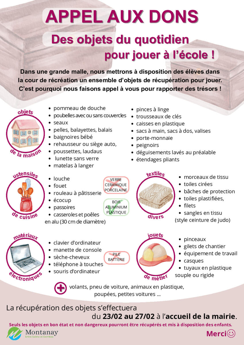 Your town hall / News / collecte d'objets du quotidien pour les écoles