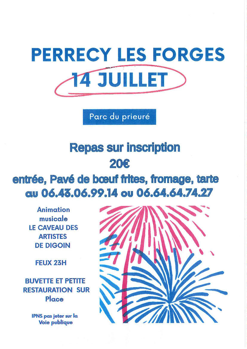 Les feux d'artifice auront lieu comme chaque année le 14 juillet avec le soutien et en collaboration avec le comité des fêtes qui proposera un repas et une animation.
