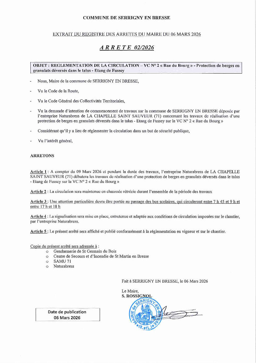 Your town hall / News / ARRETE TRAVAUX ETANG DE FUSSEY