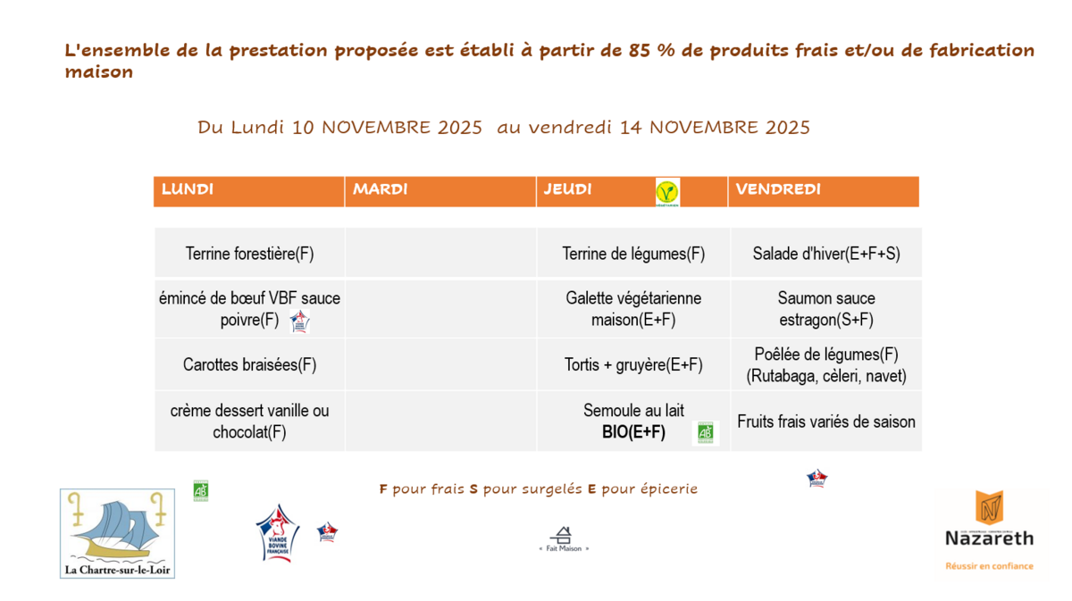 📅 Menus de la cantine - semaine 46