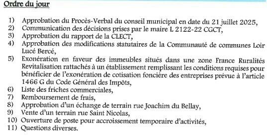 Le prochain conseil municipal aura lieu le lundi 15 septembre 2025 à 20h30 dans la salle du conseil municipal.