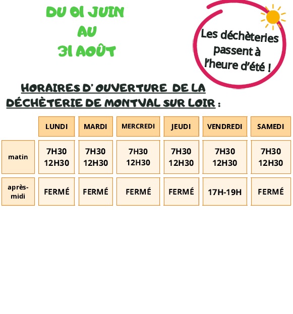 / HORAIRES D'ETE 2025 DECHETERIES