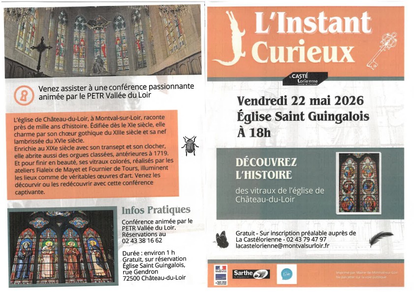* Et ne ratez pas l'INSTANT CURIEUX : Histoire des vitraux de l'église St Guingalois le vendredi 22 mai à 18h - sur inscription 02 43 79 47 97