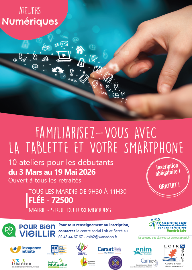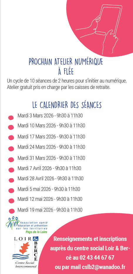 Des ateliers numériques sont organisés à Flée afin de permettre à chacun de mieux maîtriser les outils numériques du quotidien (téléphone, tablette, applications, usages pratiques). Ces ateliers sont entièrement gratuits. Les places étant limitées et les inscriptions proches de leur terme, il est recommandé de réserver rapidement.