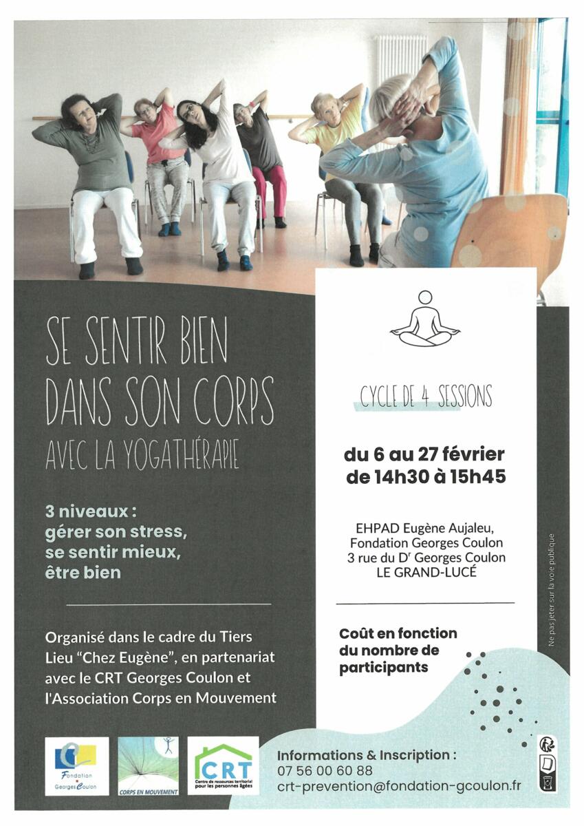 Progamme activités CRT Georges Coulon 1/14/26 Activités CRT Georges Coulon : Se sentir bien dans son corps avec la Yogathérapie.