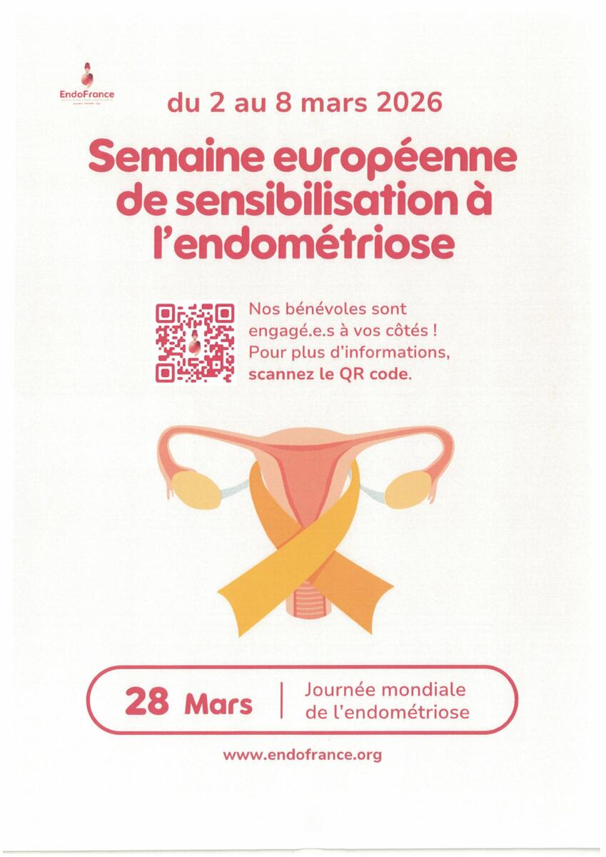 Semaine européenne de sensibilisation à l'endométriose 3/2/26 Semaine européenne de sensibilisation à l'endométriose du 2 au 8 Mars 2026.