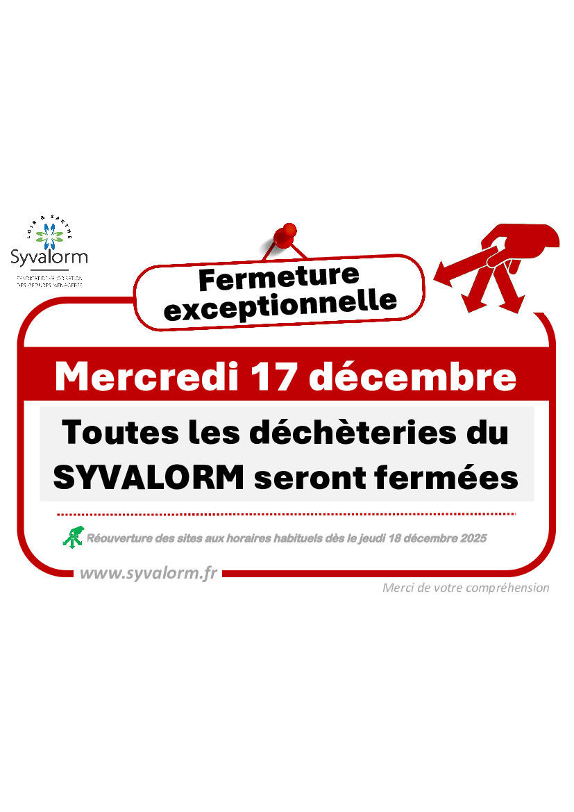 SYVALORM : fermeture exceptionnelle des déchèteries le 17/12