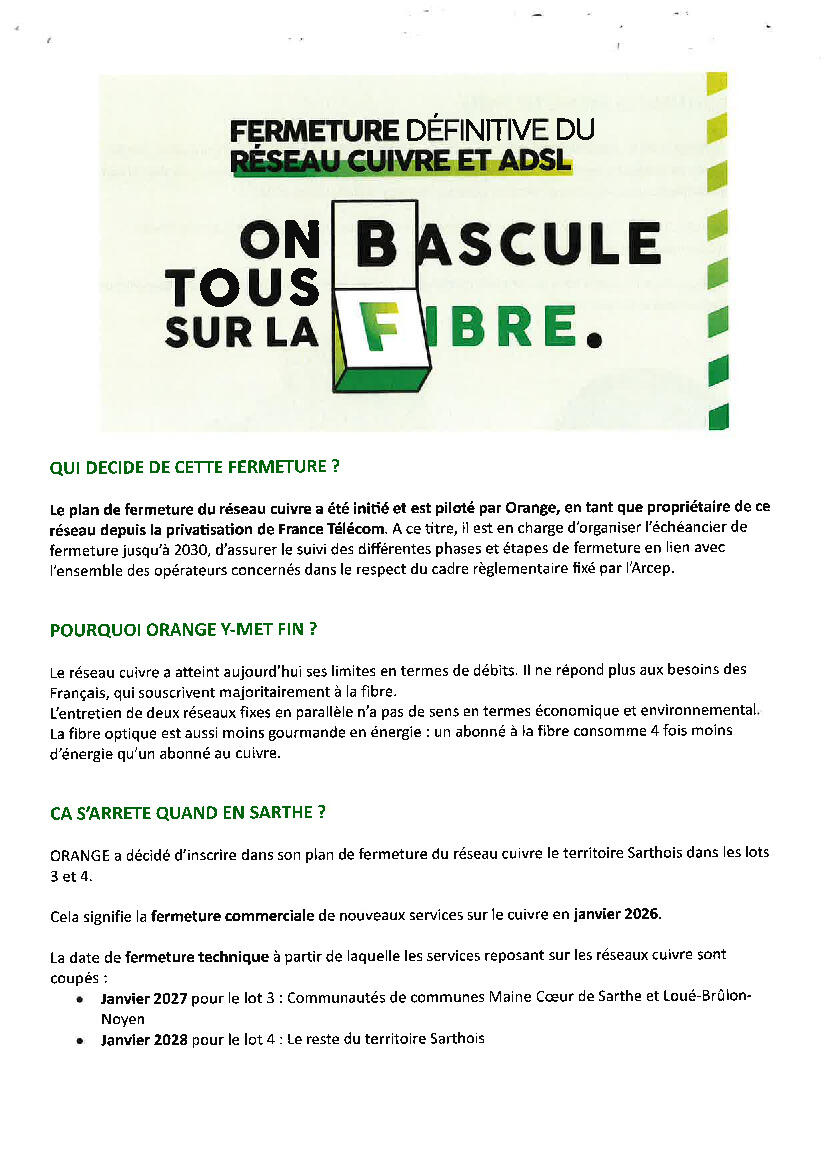 Your town hall / News / FERMETURE DEFINITIVE DU RESEAU CUIVRE ET ADSL EN JANVIER 28