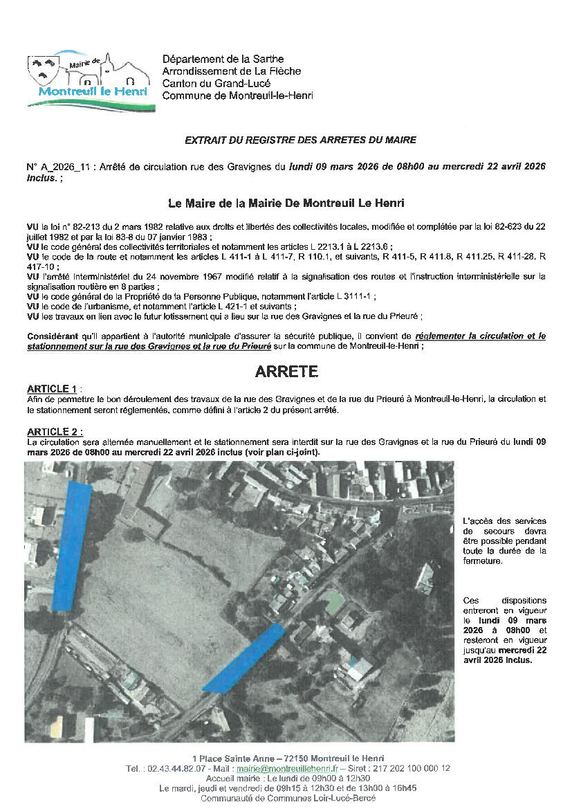 Arrêté - Rue des Gravignes et rue du Prieuré
