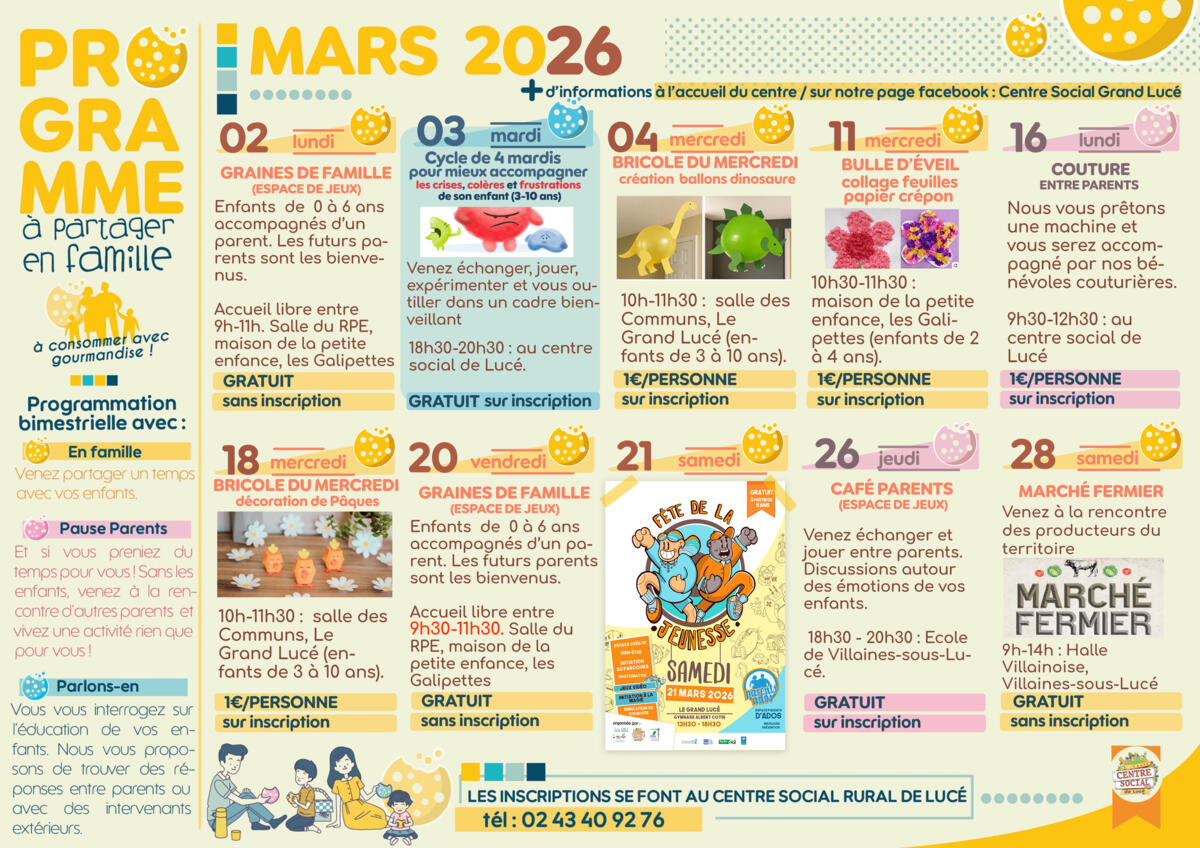 À partager en famille, programme du mois de MARS / AVRIL