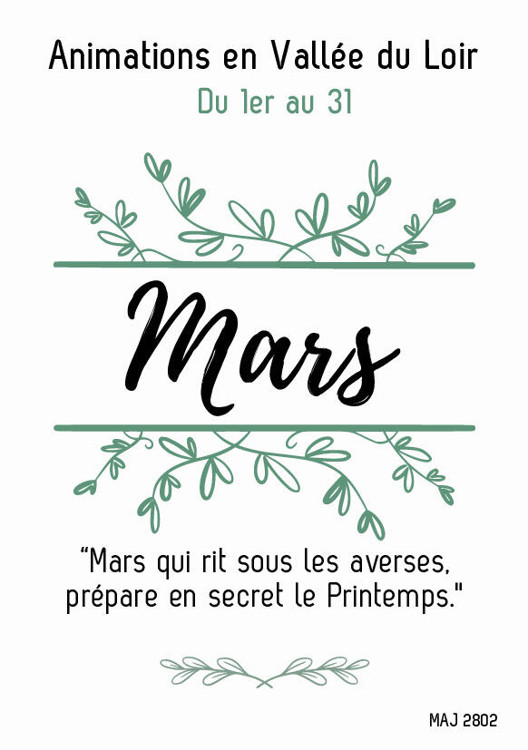 Your town hall / News / Animations en Vallée du Loir du mois de Mars
