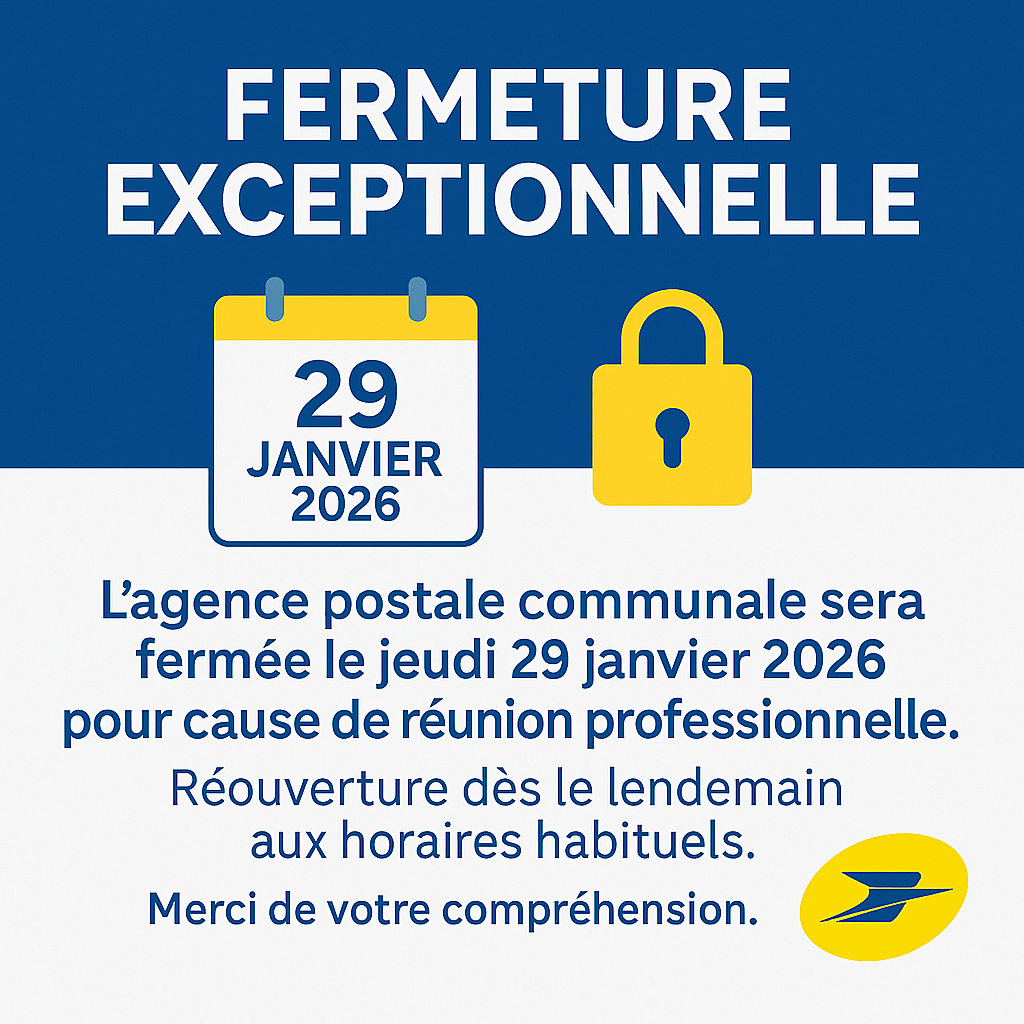 Fermeture exceptionnelle de l'agence postale : 29.01.2026