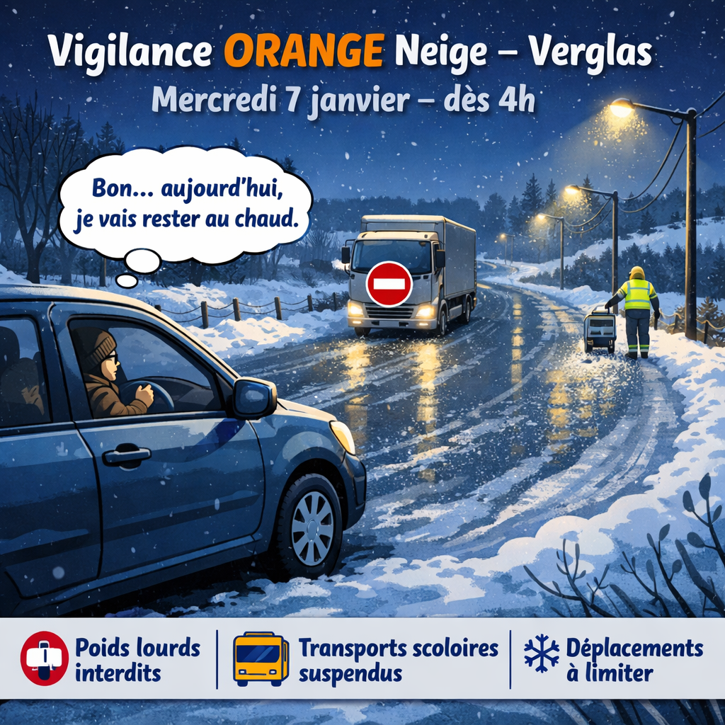 ⚠️ Vigilance orange Neige – Verglas ⚠️ Mercredi 7