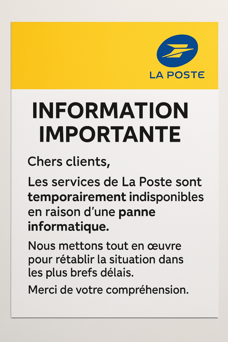 Your town hall / News / Panne informatique : service de la poste indisponible