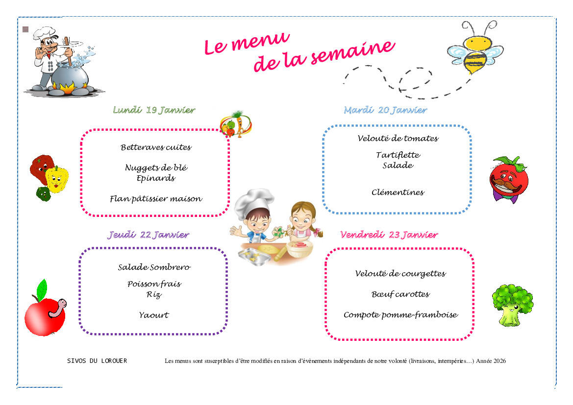 😋 MENUS CANTINE SCOLAIRE - du 19/01 au 23/01 🍽